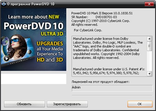 версия Cyberlink PowerDVD v10.0.1830.51 mark 2 (пролеченная)