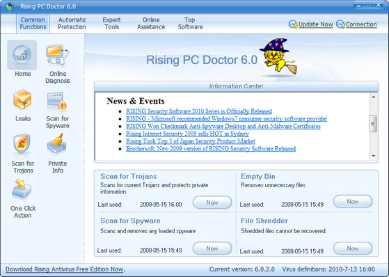 Rising PC Doctor - профессиональная и удобная программа по обеспечению безопасности компьютера. С такими ключевыми функциями как: автоматический анализ вредоносных программ, установка защиты на USB устройства хранения, возможность восстановления Microsoft Internet Explorer и Windows, программа обнаружения и блокировки троянов, защита от вредоносных веб сайтов, защита веб браузера и инструмент блокировки загрузки троянов, Rising PC Doctor значительно повысит вашу защиту от вредоносных программ и других кибер угроз.