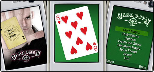 Card Omen - фокус с картами. Нужно запустить Card Omen и дать телефон другу например. Пусть он сам выберет карту, закроет телефон и передаст его тебе. Естественно ты не должен видеть какую карту он загадал... Но ты её угадаешь, поверь... Размер экрана: 240х320.