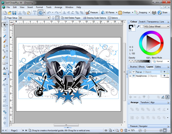 Get high quality artwork out of DrawPlus X4 at any size with dynamic printing and exports.