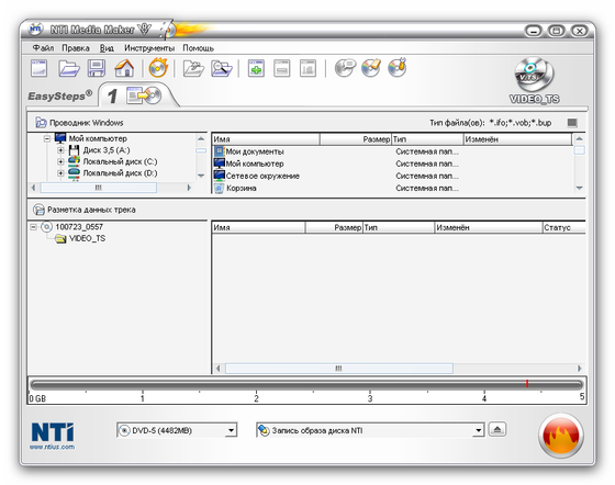 NTI Media Maker - основательный программный комплекс для записи CD и DVD уровня таких программ, как Nero и Easy Media Creator. Помимо записи дисков разных типов в пакете содержатся возможности для захвата видео и аудио с разных источников, инструменты редактирования видео и аудио с возможностью добавления эффектов, видео-плеер с поддержкой AVI, MPEG-1 и MPEG-2, виртуальный CD-ROM, утилита создания обложек для дисков, мощный конвертор, работа с Blu-Ray видео и т.д.