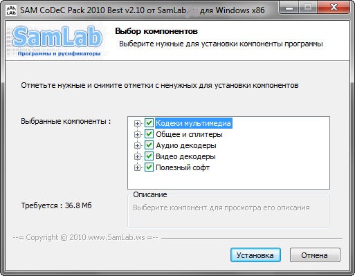 Скачать программу SAM CoDeC Pack 2010 v2.10 х86 (10,05 МБ):