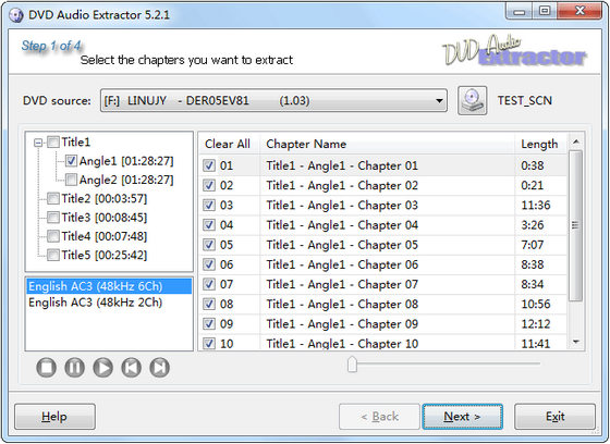 DVD Audio Extractor - небольшая программа, призванная помочь в «выдирании» саундтреков с дисков DVD и сохранения их в форматах OGG, MP3 или Wav. DVD Audio Extractor справляется с извлечением аудио из большинства форматов DVD-Video: Dobly Digital, MPEG-1 и MPEG-2, Liner PCM. Программа поддерживает пакетное выполнение заданий, благодаря этому Вы можете указать все аудиотреки, которые нужно извлечь и программа выполнит операции с ними одну за другой.