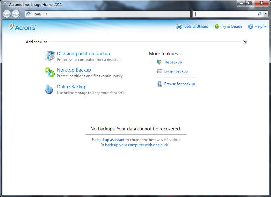 Acronis True Image - программа для полного резервного копирования, позволяющая создавать точные образы жесткого диска и/или отдельных разделов прямо в Windows без перезагрузки. Образ диска, включающий абсолютно все данные, приложения и операционные системы, может быть восстановлен на жесткий диск в случае сбоя старого диска, вирусной атаки и любых других фатальных ошибок программного и аппаратного обеспечения, даже когда обычные средства резервного копирования файлов не помогают.