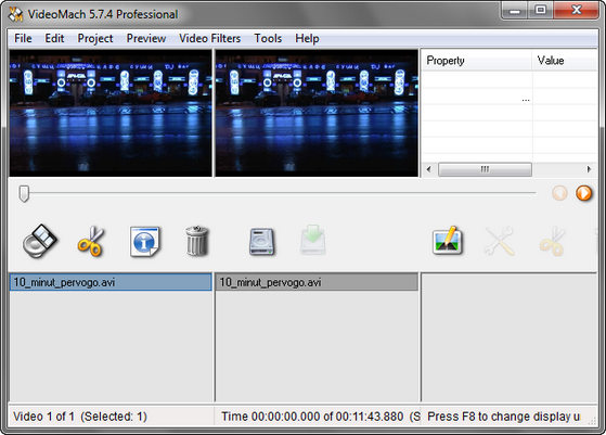 Videomach - отличный редактор аудио и видео, конвертор мультимедийных файлов. Основные возможности VideoMach включают в себя создание видеороликов из последовательности картинок, объединение аудио и видео дорожек, разделение видео на аудиосоставляющую и последовательность картинок, наложение фильтров, выбор и настройку аудио и видео кодеков, настройку параметров конвертирования, изменение скорости аудио или видео потока.