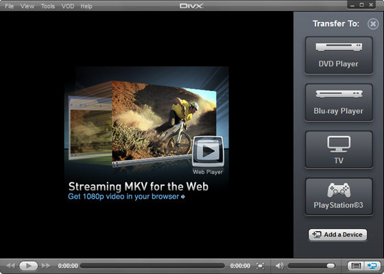 В качестве основы для формата DivX Plus HD выбран MKV. Теперь компонент DivX Converter позволяет конвертировать видео в DivX Plus HD (выходной файл MKV/H.264) полностью бесплатно. Стоит отметить, что обычный DivX с выходным файлом DivX/MPEG-4 ASP остается, конечно же, по-прежнему платным и имеет 15-ти дневный пробный период.