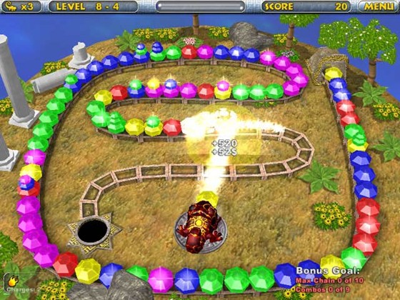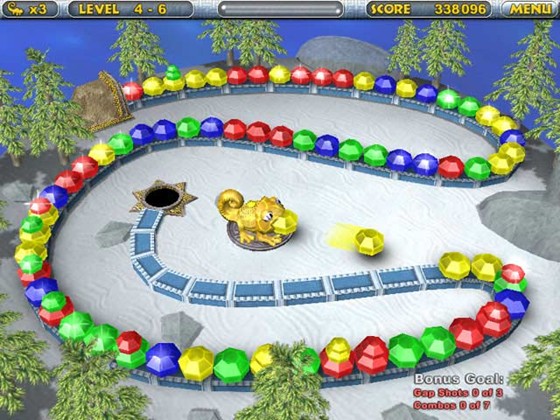 Увлекательный зуманоид: помогите забавному хамелеону уничтожить цепочки алмазов всех оттенков радуги, которые вот-вот завалят его норку. Для этого стреляйте цветными фишками с таким расчетом, чтобы создавать группы из 3 и более одинаковых элементов.