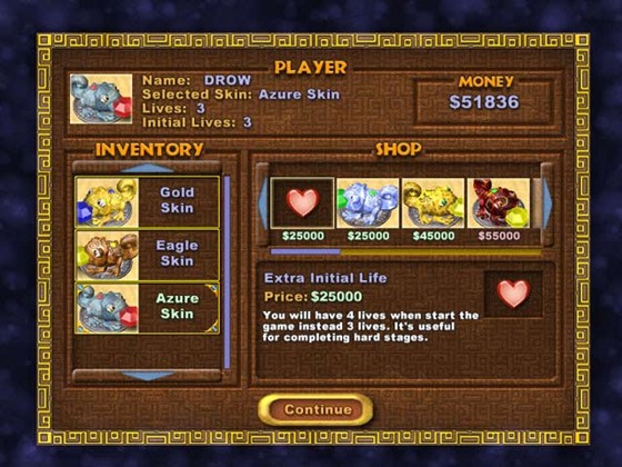После каждого удачного выстрела алмазы исчезают и временно отступают от жилища хамелеона. Чтобы окончательно обезопасить его норку, вам придется пройти 100 интересных уровней, каждый из которых будет сложнее предыдущего. Преодолеть любые преграды вам помогут бонусы, которые продаются в особом магазине. Там же можно купить и дополнительные жизни.