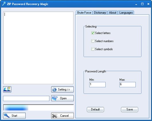 ZIP Password Recovery Magic – простая в использовании программа, которая поможет восстановить забытые пароли к ZIP архивам. Поддерживается перебор по цифрам, буквам и символам. Если паролем является неизвестное слово можно использовать атаку по словарю. Под словарной атакой понимается проверка всех известных слов на наличие в пароле. Данная программа имеет удобный и понятный пользовательский интерфейс.