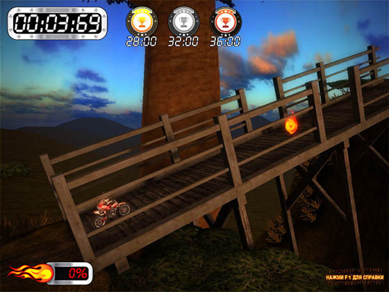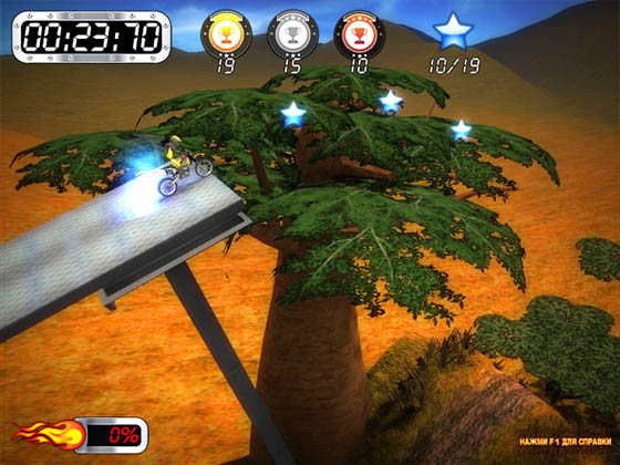 У тебя есть шанс стать участником незабываемых приключений в этой игре про мотокросс! Добро пожаловать на новые соревнования по супер мотокроссу! На этот раз они проходят в африканской саванне в двух режимах - "Опережая Время" и "Звездочет". В режиме "Опережая Время" нужно как можно быстрее пройти все препятствия. В режиме "Звездочет" нужно собрать все звезды, пока не кончилось время. Выполняй флипы и бэкфлипы, чтобы получить заряд нитро ускорения. Чтобы стать лучшим гонщиком, тебе придется освоить все тонкости игры про мотокросс.