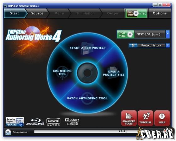 Скачать программу TMPGEnc Authoring Works 4.0.12.42 + Rus (114,14 МБ):