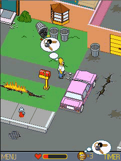 В игре в роли Гомера предстоит спасти себя и любимый Спрингфилд от неминуемой гибели. А помогают Гомеру в этом сын Барт и верная розовая свинка. Главный герой путешествует по городу в 3 различных локациях, выполняет квесты, катается и преодолевает преграды на скейтборде, успевая увиливать от атак недружелюбных сограждан, полиции, собственных клонов, клубов пара и языков пламени, вырывающихся из разбитых труб. Размеры экранов: 128x128, 128x160, 132x176, 176x208, 176x220, 240x320.