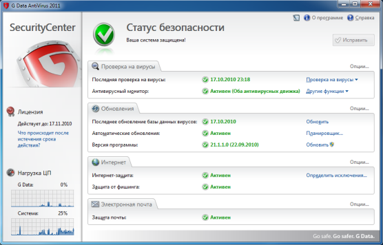 Скачать программу G Data AntiVirus 2011 Build 21.1.1.0 (270,3 МБ):