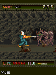 SplatterHouse вы будете играть за студента колледжа Rick Taylor. Он пытается спасти свою подругу, Jennifer, которая исчезла после того как попала в Западный Особняк (West Mansion). Противостоя потусторонним созданиям, Rick находит "живую" маску, которая предлагает ему дать силы, для того чтобы найти Jennifer. Rick надевает маску и тем самым трансформируется в монстра "juggernaut".Сюжет в игре создан по комиксам написанными Gordon Rennie. Размеры экранов: 128x128, 176x208, 208x208, 240x320, 320x240, 352x416, 360x640.