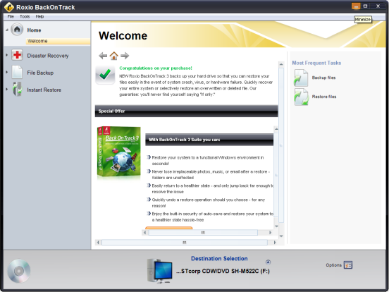 Полная защита диска и данных. Мощные записывающие и резервные компоненты Easy Media Creator дают возможность пользователям записывать, копировать и архивировать все виды цифровой информации и данных на CD и DVD, включая двухслойные DVD. Теперь DVD-фильмы можно легко сжать с 9 ГБ до стандартного размера 4,7 ГБ.