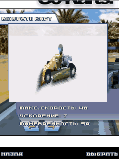 Картингом – начинают карьеру многие водители Формулы 1. Теперь твоя очередь. В java-игре Go - Karts 3D тебе предлагается превосходное качество графики и реальная физика. Ты сможешь соревноваться в разных условиях. Тебя ожидают 12-ь треков разной сложности и 3-и игровых режима. Размеры экранов: 128x160, 176x205, 176x220, 240x297, 240x320, 320x240, 360x640.