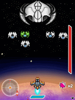 Окунись в этот космический шутер, чтобы спасти галактику от огромного инопланетного вторжения! Используй свой космический корабль, перемещаясь на все 360° вокруг планеты, путешествуй и побеждай в решающих битвах! Выбери сюжет, играя солдатом Джеком или Джейном. Размеры экранов: 176×220, 240×320, 320×240.