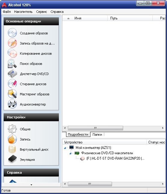 Alcohol 120% - эмулятор CD/DVD-дисков. Программа создает на жестком диске ПК пользователя образ диска с данными, аудио или видео информацией, а затем предоставляет доступ к этим данным другим программам так, словно искомый диск находится в приводе. Alcohol 120% поддерживает работу со многими форматами CD/DVD, имеет возможность работы с 31 образом одновременно, обеспечивает несоизмеримо большую (по сравнению с CD) скорость передачи данных между приложением и образом диска. Alcohol 120% может работать с большинством известных файлов-образов, эмулирует работу 200х скоростного CD-ROM, есть поиск образов, еще одна положительная черта - программа может копировать защищенные диски, обходить защиту SafeDisc, StarForce (частично), Securom и LaserLock.