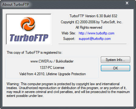 Скачать программу TurboFTP 6.30 Build 832 (7,38 МБ):