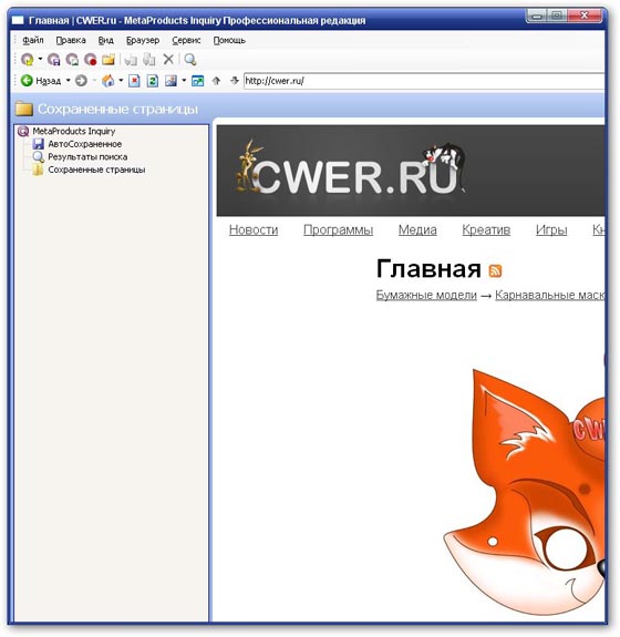 Inquiry - программа позволяет быстро и просто сохранять веб-страницы целиком или некоторые их фрагменты. Открытые вами страницы сохраняются всего одним кликом. Программа имеет встроенный HTML-редактор, возможность поиска внутри сохраненных страниц и многое другое. Предназначена для работы под различными системами Windows и полностью интегрировано в Microsoft Internet Explorer. Помимо интеграции с IE, Inquiry интегрируется в Firefox, а также имеет самостоятельное решение, позволяющее использовать его и в качестве браузера, и в качестве программы для сохранения страниц. В последних версиях добавлено подтверждение, когда страница сохраняется или, если страница с таким адресом уже есть в папке, диалог свойства папки, возможность изменения начальной страницы в браузере программы, возможность показывать последнюю открытую страницу при запуске. Inquiry имеет русифицированный интерфейс и русскую справку для помощи в освоении этой программы.