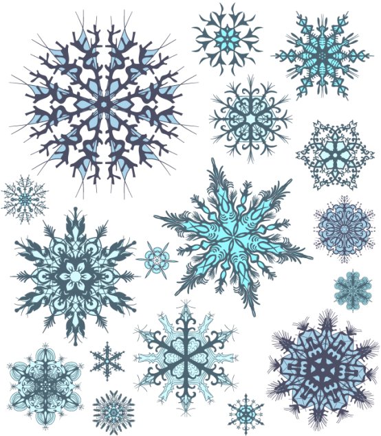 Скачать векторный клипарт "декоративные векторные снежинки" (16,71 МБ):