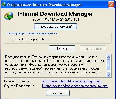 Internet Download Manager - предназначен для организации загрузок файлов из Интернет. Различные методы ускорения загрузки, динамическая сегментация файлов и одновременное скачивание нескольких частей, использование свободных открытых подключений без реконнекта и многое другое. Встроенная звонилка для соединения по расписанию. поддержка файрволлов, прокси и зеркал, FTP and HTTP protocols, редиректов, куки, очередей закачки, авторизации пользователя. Internet Download Manager интегрируется в Microsoft Internet Explorer, Netscape, MSN Explorer, Opera and Mozilla и автоматически перехватывает закачки. Зачастую увеличивает скорость скачивания на 500%. На странице программы есть диаграммы тестов с другими менеджерами закачек.