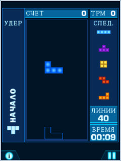 Классический тетрис, в прекрасном современном исполнении. Имеется несколько различных игровых режимов. Захватывающее продолжение любимой игры не только позабавит вас но и заставит пошевелить мозгами. 15 уровней сложности игры, плюс дополнительные возможности, в том числе и вращения блоков. Вы сможете переиграть неудачные игры и проверить себя на ошибки. Размер экрана: 128x128, 128x160, 132x176, 176x204, 176x208, 176x220, 240x320, 240x400, 320x240, 352x416, 360x640, 480x800.