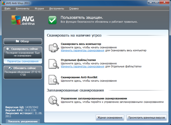 Скачать программу AVG Anti-Virus Professional Edition 2011 v10.0.1191 x86 (146,13 МБ):