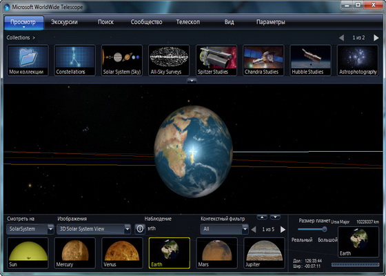 Скачать программу Microsoft WorldWide Telescope 2.8.15.1 (56,31 МБ):