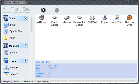 Anti-Trojan Elite - программа для удаления всевозможных троянов и keylogger, которая также поможет обезопасить вашу работу на компьютере. Утилита может сканировать, в поисках опасных файлов, жесткий диск или память ПК, обладает встроенным сетевым менеджером для мониторинга протоколов, имеет менеджер запущенных процессов, позволяет создавать резервные копии удаляемых файлов. Кроме того, присутствует модуль оптимизации работы ПК, функция обновления программы через Интернет, имеется поддержка работы со сжатым файлами, защита реестра и т.д.
