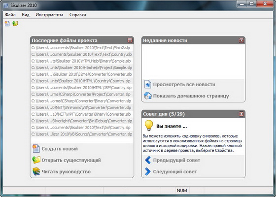 Sisulizer - данная программа предназначена для локализации разнообразного программного обеспечения. Процесс локализации происходит путём сканирования приложения и определения всех участков текста. Поддерживает работу непосредственно в C++ Builder, Delphi, Visual C++, Visual Basic, jаvа, XLIFF. Позволяет визуально работать с HTML и XML, а также отбирать текст из текстовых файлов и баз данных. Программой осуществляется поддержка мобильных приложений: .NET для смарт-устройств, Pocket PC, Windows mobile, Symbian, и J2ME. После сканирования происходит перевод текста с использованием визуального редактора и последующее сохранение проекта с локализацией. После установки программы вы сможете сразу же начать переводить ваши любимые, но не локализованные программы - от вас только требуется знание языков. В данной программе имеется функция автоперевода текста, однако данная возможность будет удобна только при переводе небольших словосочетаний. Программа имеет интуитивно-понятный и многоязычный интерфейс, с поддержкой большого количества языков, включая русский.