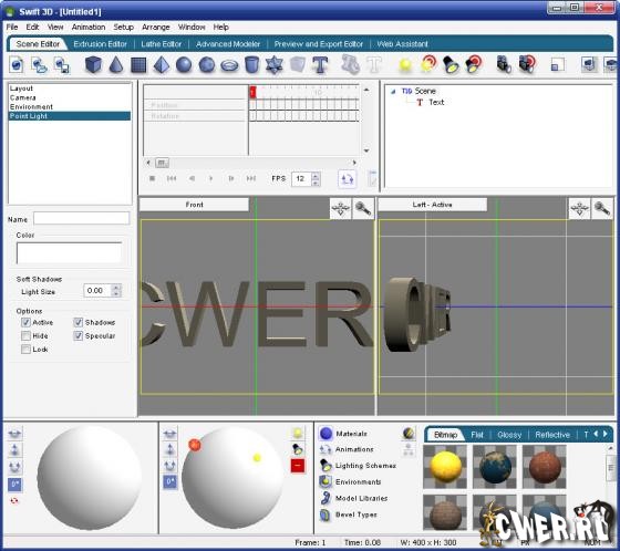 Данной программе отведена особая роль - это приложение для векторного трехмерного моделирования, анимации и визуализации. В основном она адресована Web-дизайнерам, использующим технологию Flash для создания мультимедийных материалов в формате rich-media, и поэтому набор его функциональных возможностей ориентирован на создание анимационных сцен. Поскольку трехмерная анимация в Интернете (а особенно в формате Flash) представляет собой покадровый процесс, средства моделирования и анимации программы обеспечивают пользователя только самыми необходимыми функциональными возможностями. Каждый элемент интерфейса и механизма визуализации Swift 3D служит для ускорения и облегчения процесса создания трехмерной графики для Flash.