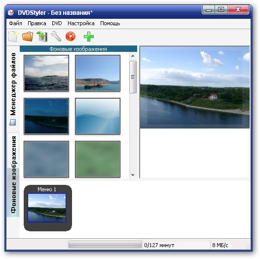 - импорт графических файлов для заднего фона DVD меню