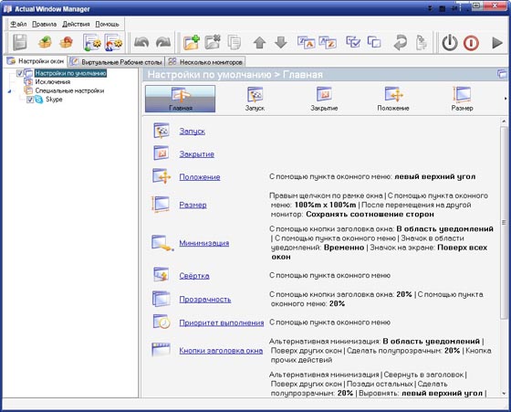 После установки и запуска Actual Window Manager работает в фоновом режиме, обеспечивая:
