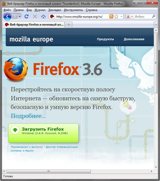 Скачать программу Mozilla FireFox 3.6.14 Final (8,44 МБ):