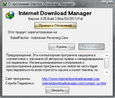 Скачать программу Internet Download Manager 6.05 Build 3 Final (4,9 МБ):