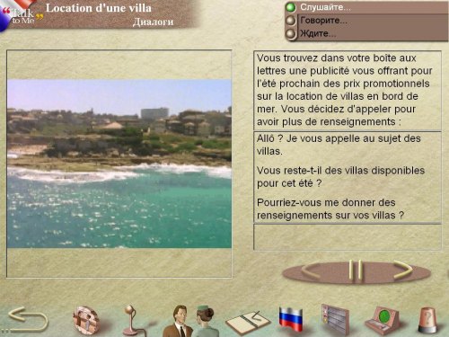 Talk to Me – интерактивный компьютерный курс для изучения французского языка. Новейшие мультимедийные технологии помогают быстро и эффективно освоить восприятие устной речи, поставить правильное произношение и обучить беглому говорению. Занятия с Talk to Me развивают все речевые навыки и умения и будут интересны людям разного возраста.