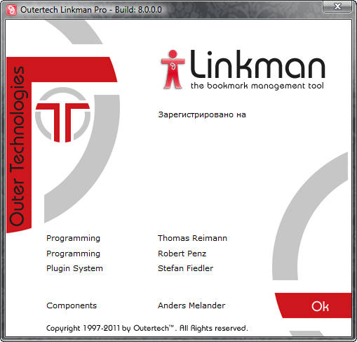 Вы сможете с легкостью добавлять в нее ссылки из всех окон браузера с автоматическим назначением ключевых слов и описания к добавляемой ссылке. Вы также сможете проделывать импорт и синхронизацию из существующих коллекций закладок, а также экспортировать закладки в различные форматы. Даже сможете создавать ваши собственные шаблоны для экспорта. В программе уже имеется несколько примеров шаблонов для экспорта в форматы XML и HTML. Linkman Pro поддерживает множество версий десяти основных браузеров Windows: Internet Explorer 3.x-8.x, Google Chrome, Firefox 1.x-3.x, K-Meleon 1.x, Maxthon, SeaMonkey 1.x, Opera 4.x-9x, Avant Browser, Neoplanet, Netcaptor, SlimBrowser. Интерфейс программы представлен на 10-ти языках, включая русский.