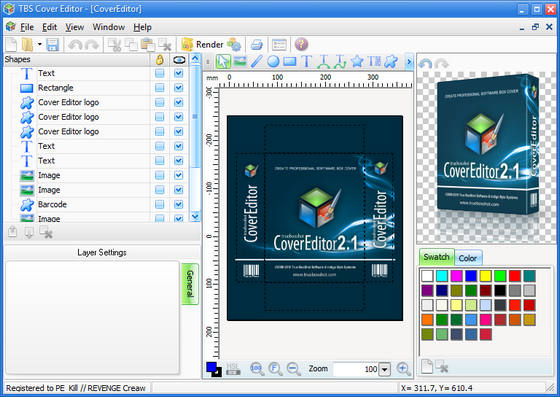 TBS Cover Editor - программа для создания и редактирования трехмерных обложек коробок для ваших представляемых продуктов. Основная отличительная особенность TBS Cover Editor от других подобных программ, заключается в том, что коробка во время редактирования представлена как развёртка всех сторон одновременно с отображением ее готового трехмерного вида мгновенно меняющегося согласно вашего редактирования. Ещё одно не мало важное достоинство редактора - это базово заложенный богатый набор шаблонов вида коробок. Помощник программы после выбора вами понравившегося шаблона и ввода имени продукта и фирмы, поведет вас за руку до конечного результата - готовой коробки.