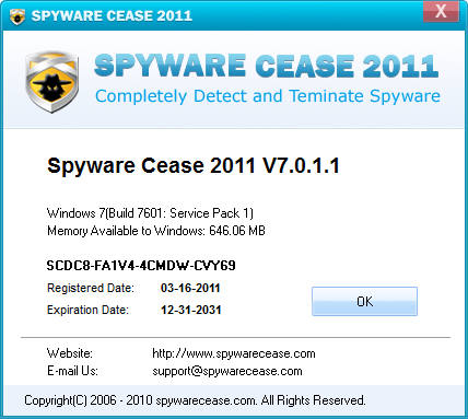 Spyware Cease - программа для защиты вашего компьютера от шпионских атак, вредоносных троянских программ, которые могут вызвать нежелательные всплывающие окна, замедлить производительность вашего ПК или "снять" с системы какую-либо секретную информацию, без вашего ведома, в виде паролей доступа, номеров кредитных карт и т.п. С помощью данной программы вы сможете защитить ваш ПК от различных шпионских модулей.