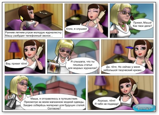 Эта аркадная игра повествует о приключениях журналистки Маши, которой вместе с вами предстоит управлять магазином модной одежды. Дело это интересное, но хлопотное: каждому клиенту нужно показать каталог, принять заказ, сшить нужную вещь и доставить ее покупателю.
