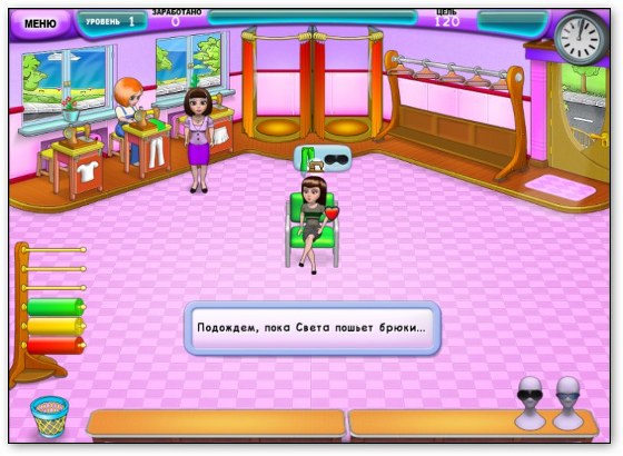 На каждом этапе игры вам необходимо заработать определенную сумму денег, иначе уровень придется переигрывать. Чтобы этого не произошло — следите за настроением посетителей. Не забывайте преподносить им небольшие подарки и угощать ароматным кофе, а также старайтесь выполнять несколько одинаковых действий подряд. Например, если заказать в мастерской сразу несколько предметов одежды одного цвета или кроя, то ваша выручка существенно увеличится.
