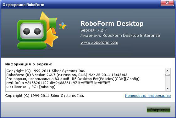 Скачать программу AI RoboForm Enterprise 7.2.7 Final (7,19 МБ):