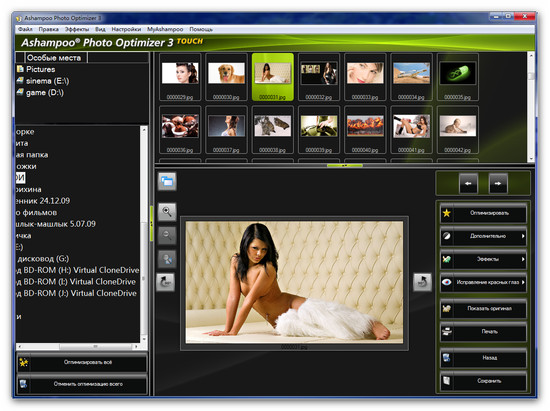 Ashampoo Photo Optimizer - простая в использовании программа для оптимизации и улучшения качества цифровых фотографий. Утилита позволяет корректировать контрастность, яркость и цветовой баланс. Все действия в программе производятся по нажатию необходимой кнопки на панели инструментов. Также, в данной программе предусмотрена пакетная обработка графических файлов. С помощью этой утилиты, снимки становятся ярче, светлее, приобретают четкость и контрастность. Если сравнивать показатели до и после преображения, заметно, насколько силен программный алгоритм оптимизации. Поработав однажды с этой программой, вы больше не захотите использовать любые другие, во многом – из-за экономии времени. Целые папки с изображениями автоматически просматриваются и преобразовываются. Исходные данные автоматически сохраняются в резервной папке и уничтожаются только когда пользователь полностью удовлетворен преображенными фотографиями. Программа обладает приятным пользовательским интерфейсом с многоязычной поддержкой, включая русский язык.