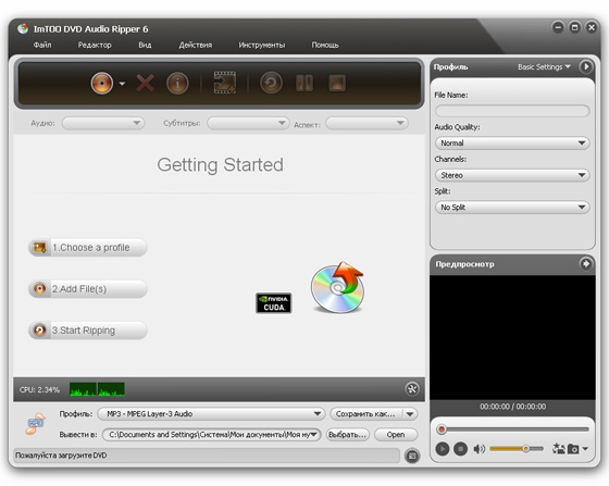 ImTOO DVD Audio Ripper является DVD аудио извлекателем и DVD в MP3 конвертером, чтобы делать рип аудио с DVD, рип звука DVD в MP3, WMA, WAV, AAC, AC3, OGG, RA и SUN AU форматы. Используя DVD Audio Ripper, вы можете извлечь DVD аудио, делать рип саундтрека и субтитров DVD фильма в MP3 файл и рип DVD звука в WAV со всеми звуковыми эффектами.