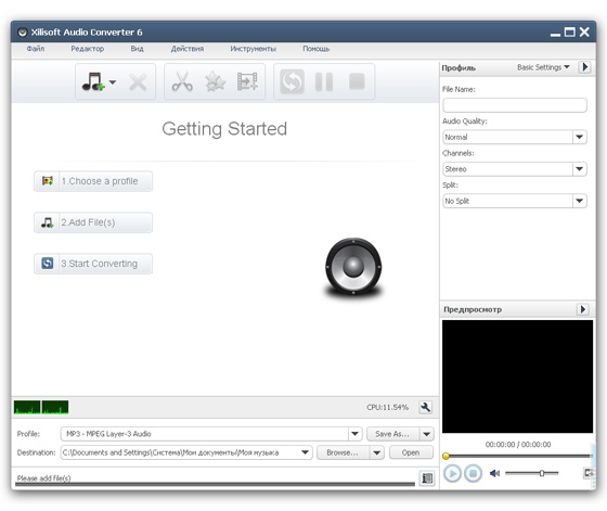 С Xilisoft Audio Converter ваша музыка теперь может быть проиграна в любом формате в любом мультимедийном плейере. Конвертирует популярные и распространённые аудиоформаты, такие, как M4A, WMA, WAV, FLAC, OGG, APE, MP2, VQF и AAC в MP3.