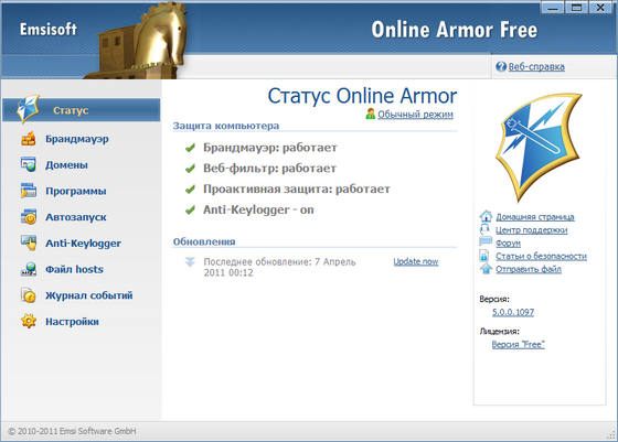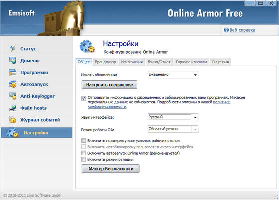 Основные характеристики Online Armor Free: