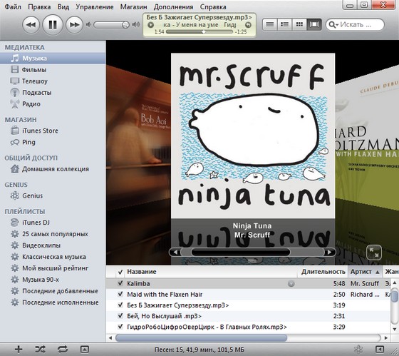 • Genius - технология создания плейлистов (при выборе композиции программа предложит подходящие композиции из интернета).