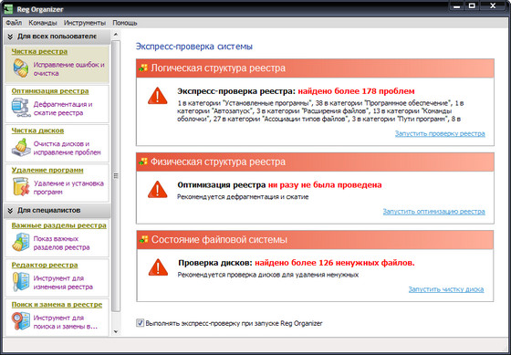 - Changes in Express Check tool logics. Now, if the Express Check was active when you exit the program, it remains turned on, and on the next run of Reg Organizer, the state of the “Execute Express Check at Reg Organizer startup”
