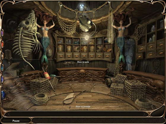 В мастерской на потолке висит скелет рыбы (кажется, рыбы-меч), надо взять от него кость и обработать её на верстаке согласно присобаченной сбоку инструкции.